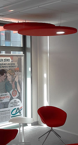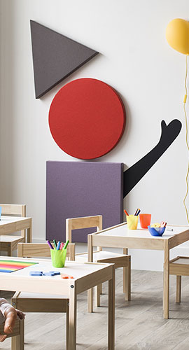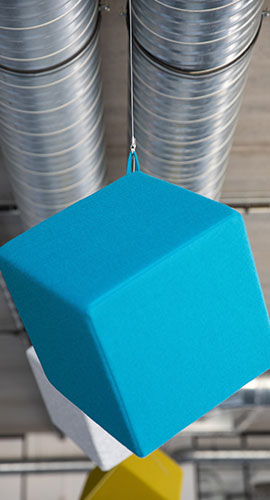 Large choix de formats, couleurs et textures. Fixation murale, plafond suspendu ou panneaux mobiles pour s’adapter à chaque projet.